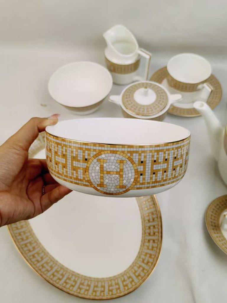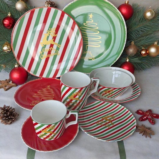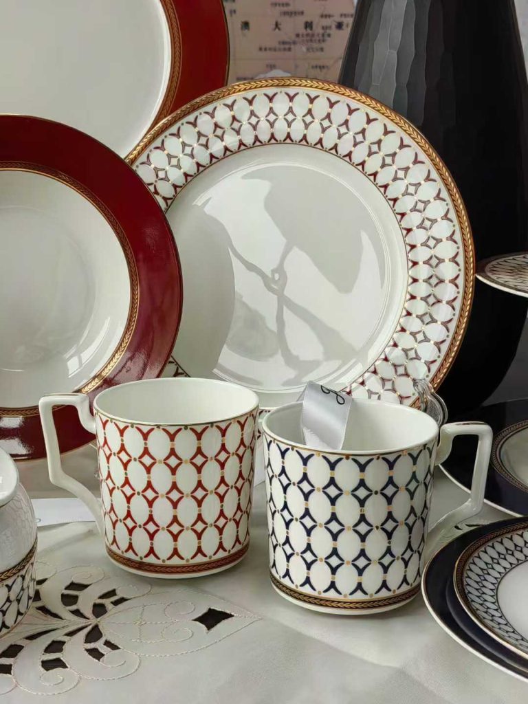 These series in the following are beautifully designed and diverse. In terms of product category, the Collections include plates, bowls, coffee cups, tea cups, mugs, multi-layered fruit & bread stands, etc. And in terms of product themes, the Collections include Christmas theme, relief carving theme, royal theme, geometric theme, gold theme, etc..